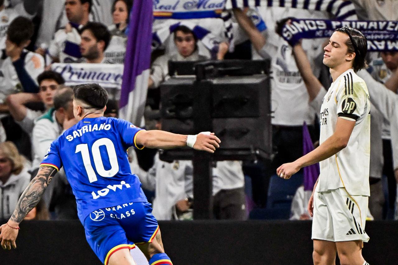 Madrid, España. – Descanso en la «Casa Blanca», Real Madrid se va al entre tiempo cayendo por la mínima ante Getafe gracias a un golazo de Martín Satriano.